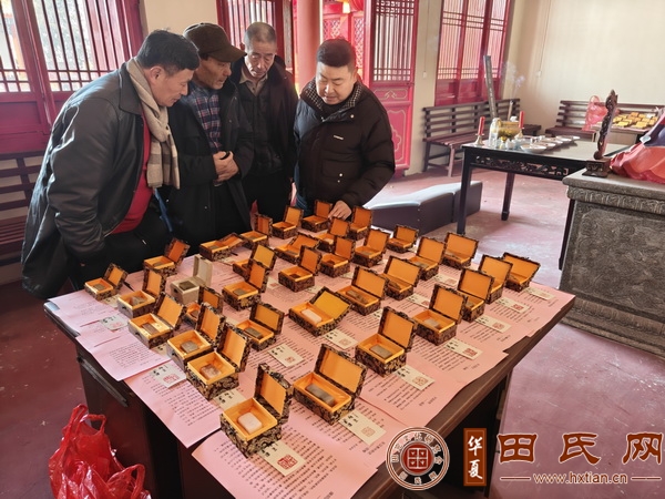 这几年,田家运宗亲通过书画艺术等方式,敬绘了齐侯田剡、齐王田儋、大司马田穰苴、齐国名将田忌、安平君田单圣像,以及书写了《史记·田敬仲完世家》、《战国策·冯谖客孟尝君》、《田氏家训》等史记资料,均已捐赠于田完祠。这些工作的开展完善了田完祠的文化,为宗亲们寻根祭祖提供了史籍资料。今又将历时多年篆刻的七十多方华夏田氏溯源、成语典故、郡望和田氏历史名人先贤印存,捐赠于家族。这些印存均有相关文字资料介绍,以金石永寿为载体,铭刻翰墨飘香于万世,发扬先祖懿德善行,启迪后昆泽被后世。田家运宗亲手写的《田氏历史名人先贤印存名录》册页一份,也随印存作品一起捐赠,已被田完祠永久珍藏。