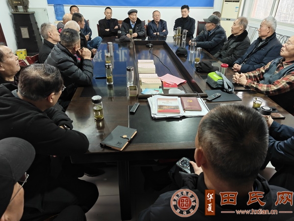 常务副会长田传灿宗亲主持会议。会议听取田家民、田家运、田传军、田传龙、田家环等宗亲对前期工作进展情况的汇报,讨论并确定了庆典资料手册印制,树立功德碑,大典议程安排等事宜。确定了宗亲联络接待、食宿交通等工作安排。公布人员分工并做详细工作安排说明。与会宗亲不断优化庆典和祭祖活动流程、打磨细节,集思广益、畅所欲言,展开热烈交流,并达成一致意见,会议圆满结束。